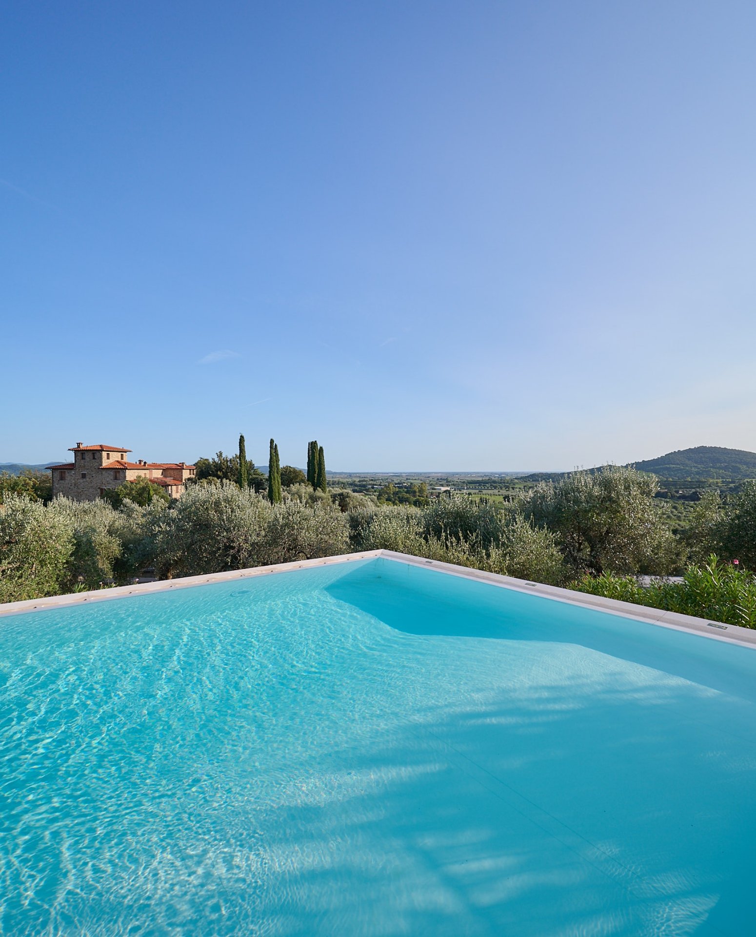 Rilassati nella nostra piscina con vista mozzafiato sulle colline toscane, disponibile da marzo a ottobre.