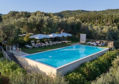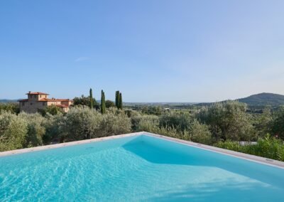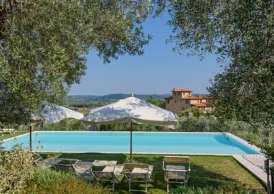 In posizione panoramica tra gli olivi secolari, si trova la Piscina riscaldata circondata da un verde prato e da lettini e ombrelloni a disposizione degli ospiti che potranno cosi godersi momenti di puro relax ammirando un panorama unico: dalla piscina lo sguardo si perde allโorizzonte, verso le colline toscane fino al limpido mare della Costa degli Etruschi.