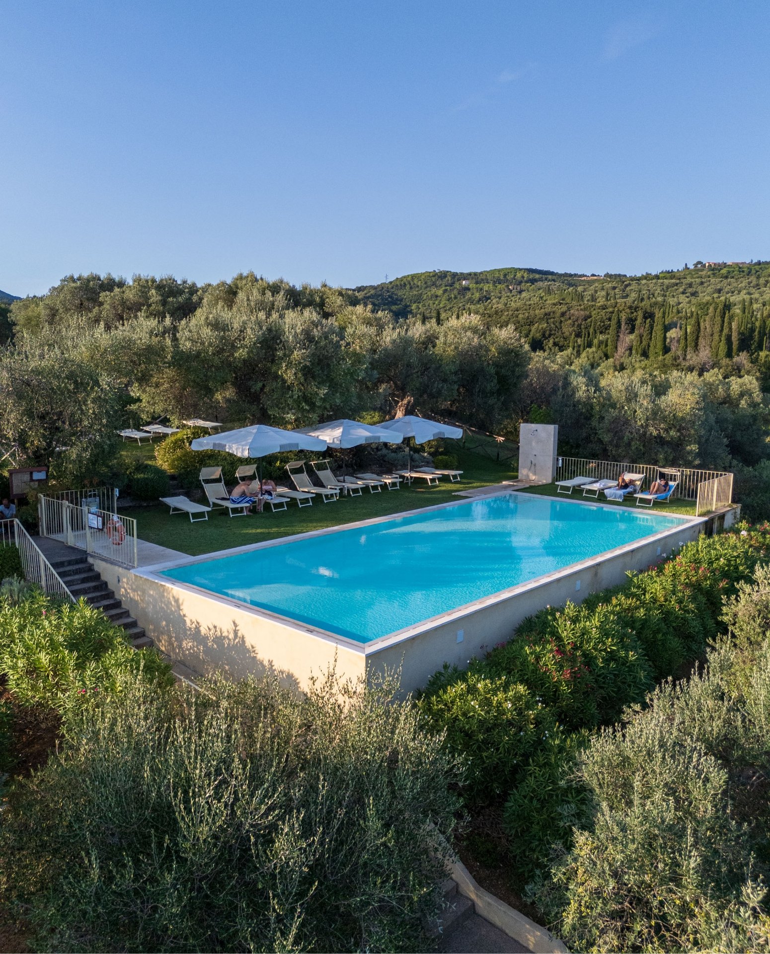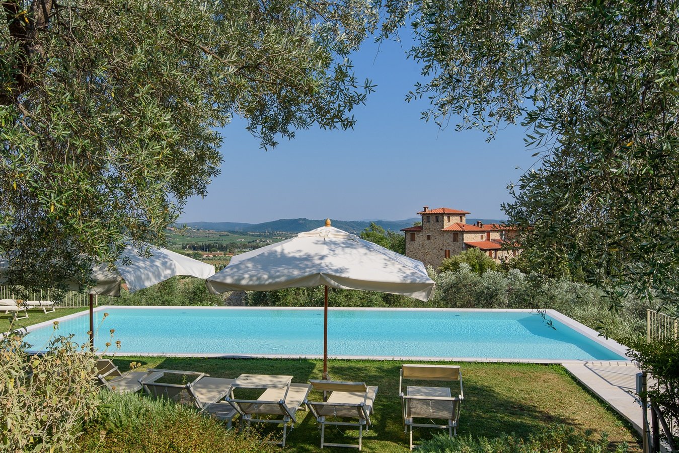 In posizione panoramica tra gli olivi secolari, si trova la Piscina riscaldata circondata da un verde prato e da lettini e ombrelloni a disposizione degli ospiti che potranno cosi godersi momenti di puro relax ammirando un panorama unico: dalla piscina lo sguardo si perde allโorizzonte, verso le colline toscane fino al limpido mare della Costa degli Etruschi.