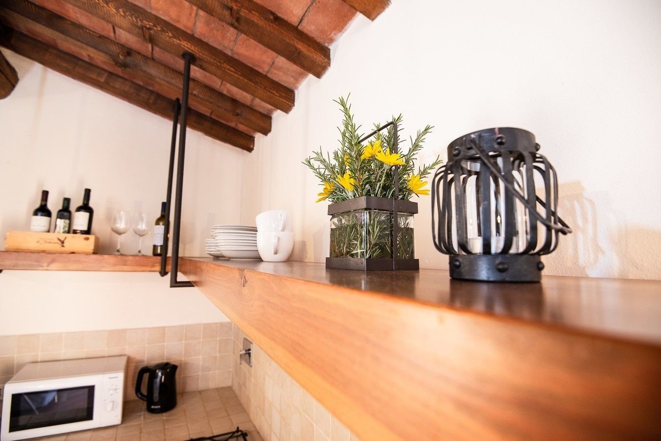 Situato al piano terra della Casetta del Pastore, ha soffitto con travi a vista e pavimento in cotto, in perfetto stile toscano. Composto da soggiorno con divano, angolo cottura con piano cottura a gas e forno a microonde.